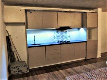 Esta unidad, se desarrolla en dos plantas: en PB. amplio ambiente con kitchenette con placares, anafe, campana, extractor, baño completo.